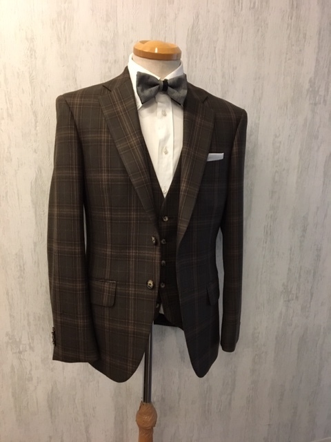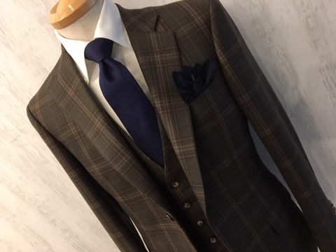 ブラウン系のチェック柄の素敵なオーダースリーピースが
