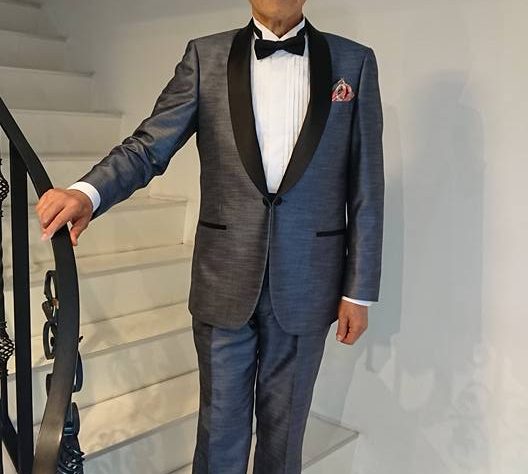 ショールタキシードの型に表地をシルバーの光沢生地に!