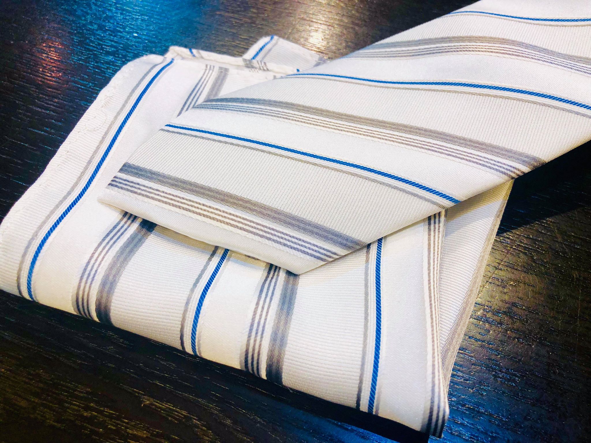 今回ご紹介したネクタイはチーフもセットになっているものになるので、